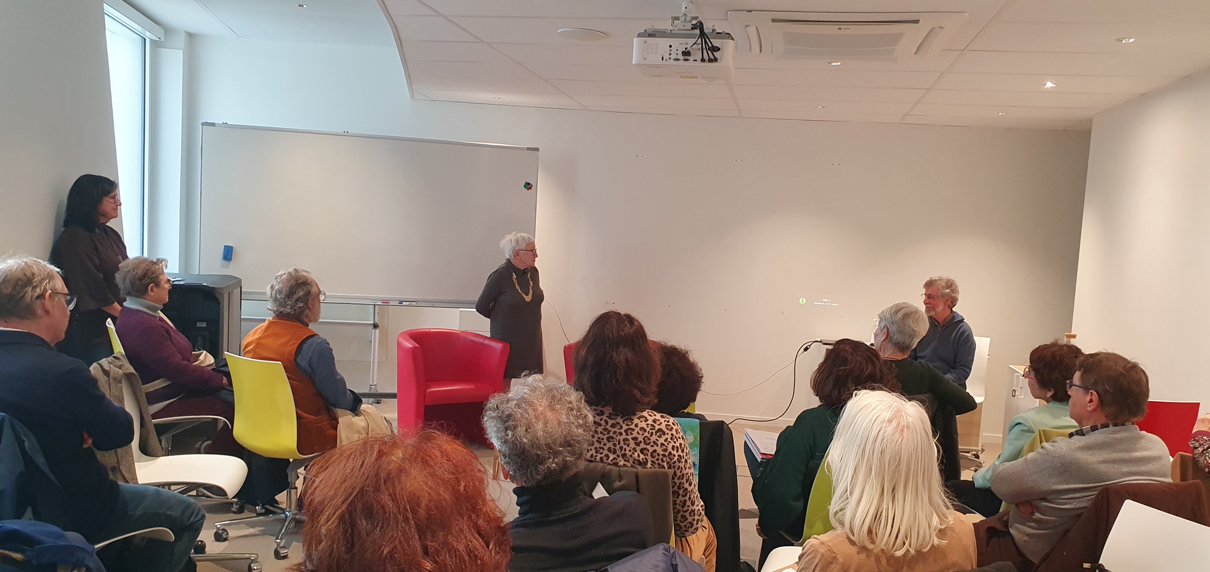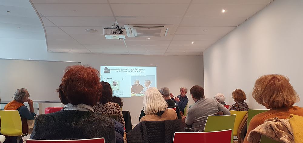 En particulier, autour de l’œuvre de Claude Vigée – et je parle aussi en tant que vice-présidente de l’Association des Amis de l’œuvre de Claude Vigée, qu’elle avait fondée avec lui – et en général autour de la poésie qu’elle a servi par ses propres créations, mais aussi en publiant et en traduisant en poète d’autres poètes tels qu’André Spire, Jean Wahl, Henri Meshonnic.